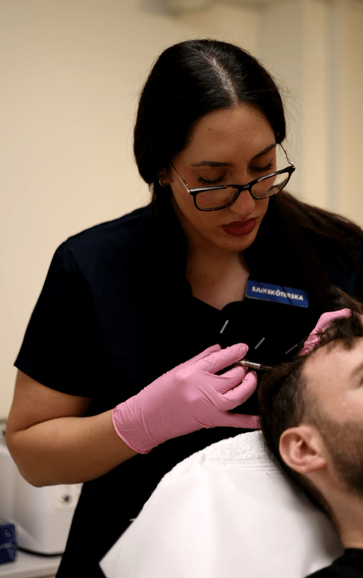 PRP-behandling är en enkel och effektiv metod utan biverkningar och med kort återhämtningstid. Den stimulerar hårväxt och återger ditt hår den fyllighet och styrka det en gång hade, vilket ger en positiv effekt på ditt självförtroende!